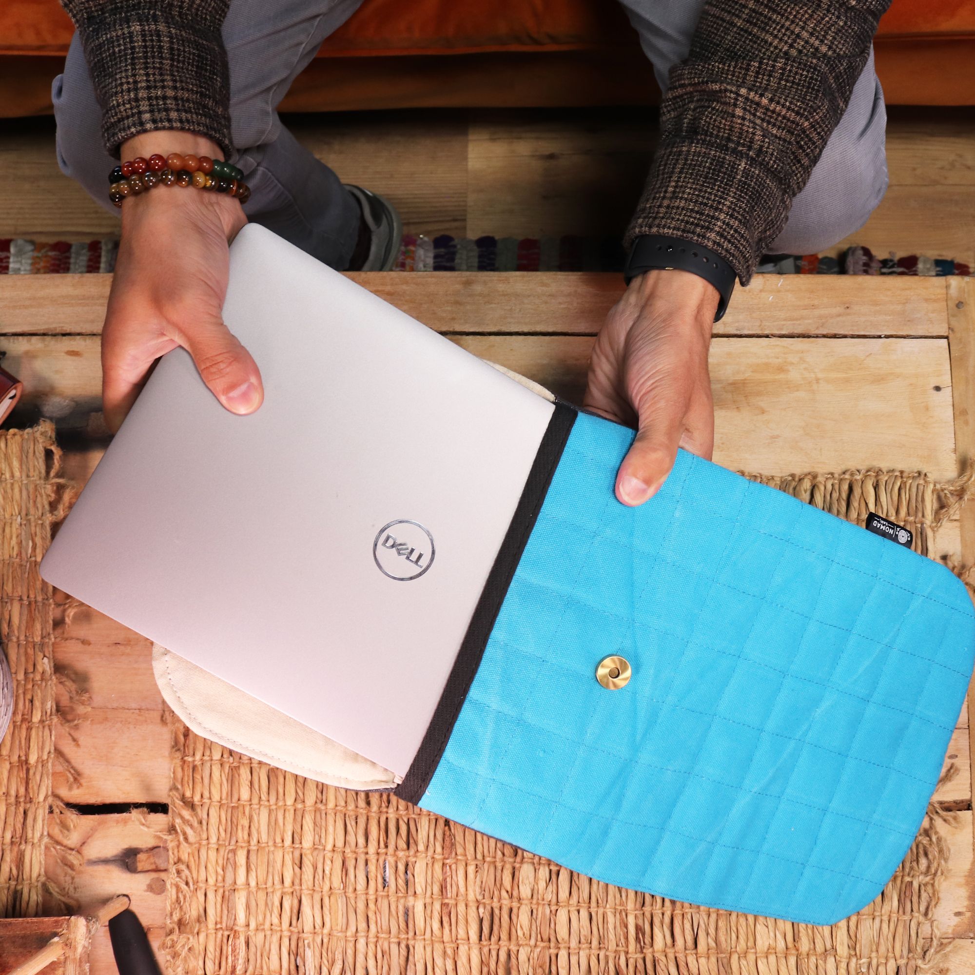Bright, bold, and brilliantly functional—this Crazy Yellow Laptop Padded Pouch is a statement piece with purpose. Handmade in India from durable 14oz stonewashed cotton, it combines vivid colour with practical design to protect tablets and laptops up to 13″.
