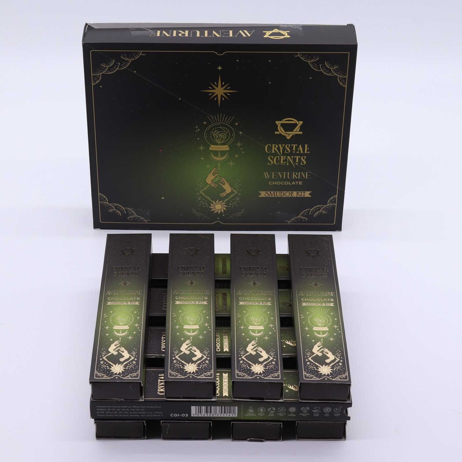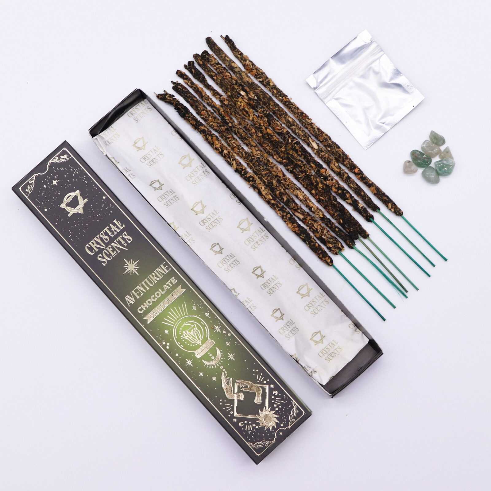 Give your space a cosy, comforting feel with these Chocolate Smudge Incense sticks, paired with natural aventurine chipstones. Handcrafted in India with traditional incense-making techniques.
