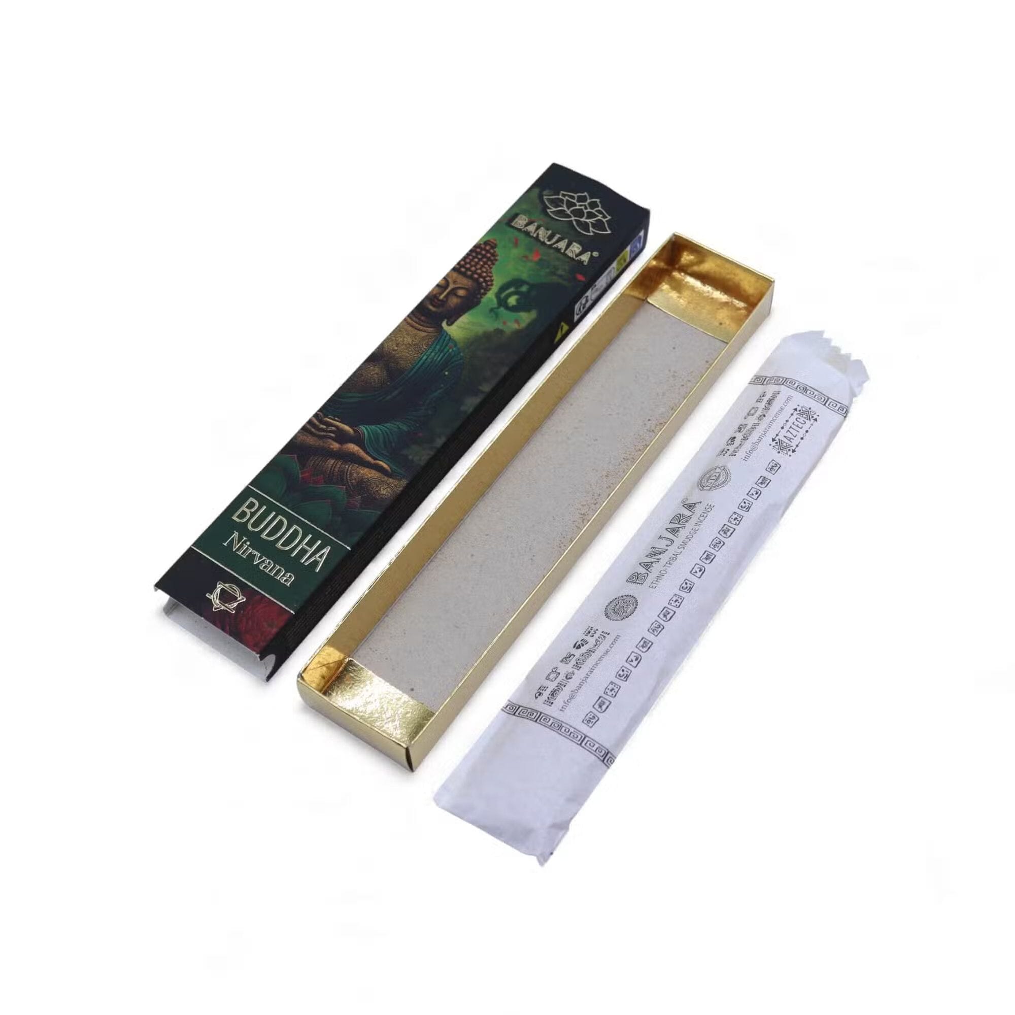 A fragrance created to inspire peace, reflection, and a sense of spiritual fulfilment. Nirvana incense transforms your space into a sanctuary for meditation and inner balance. Made in India from natural ingredients, these incense sticks burn slowly, releasing a rich, grounding aroma that lingers beautifully.