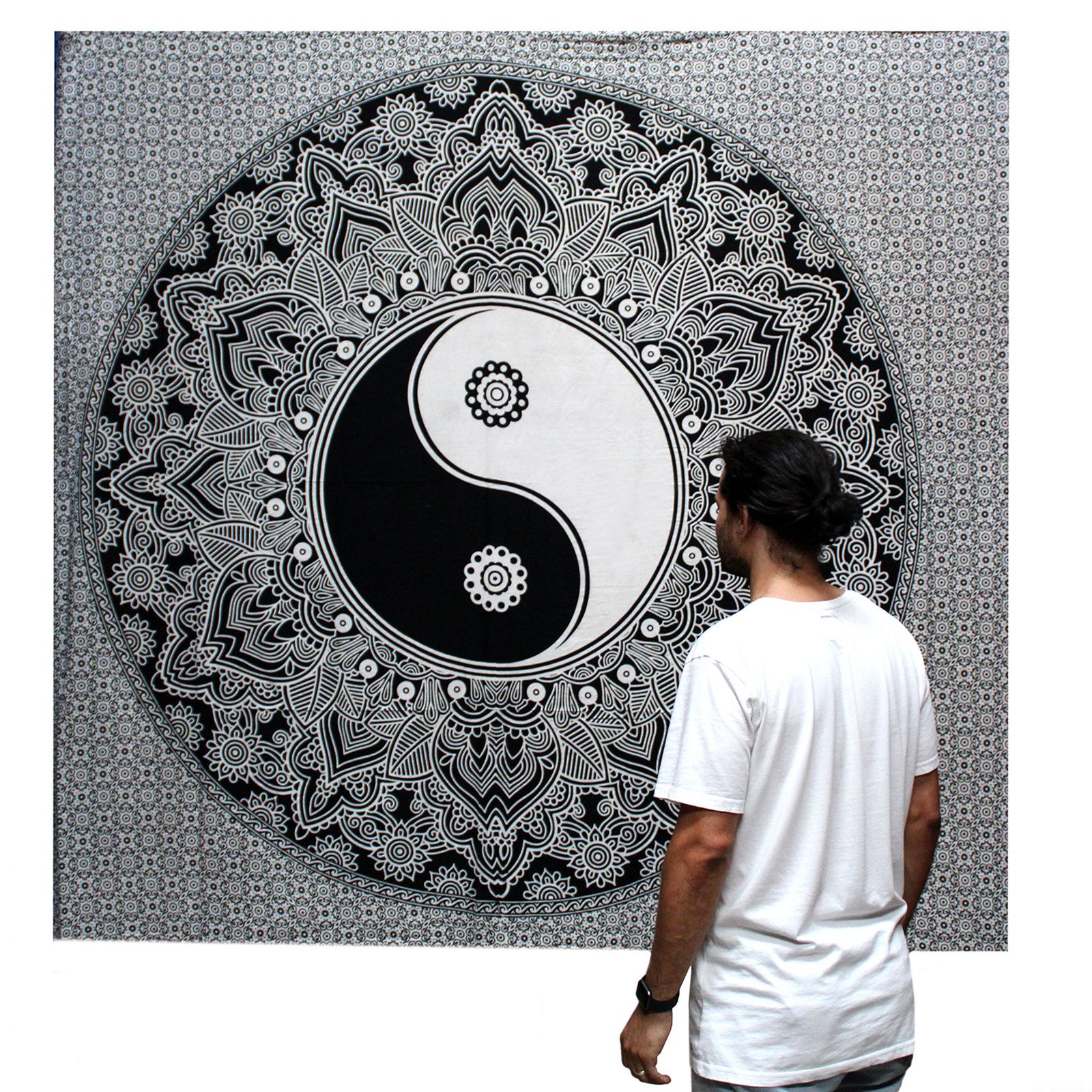 This Black & White Double Cotton Bedspread Wall Hanging is a real works of art. Full of symbolic meanings taken from ancient Indian traditions, the design is printed by hand so minor imperfections can occur. Do not confuse with cheap mass produced machine printed items.