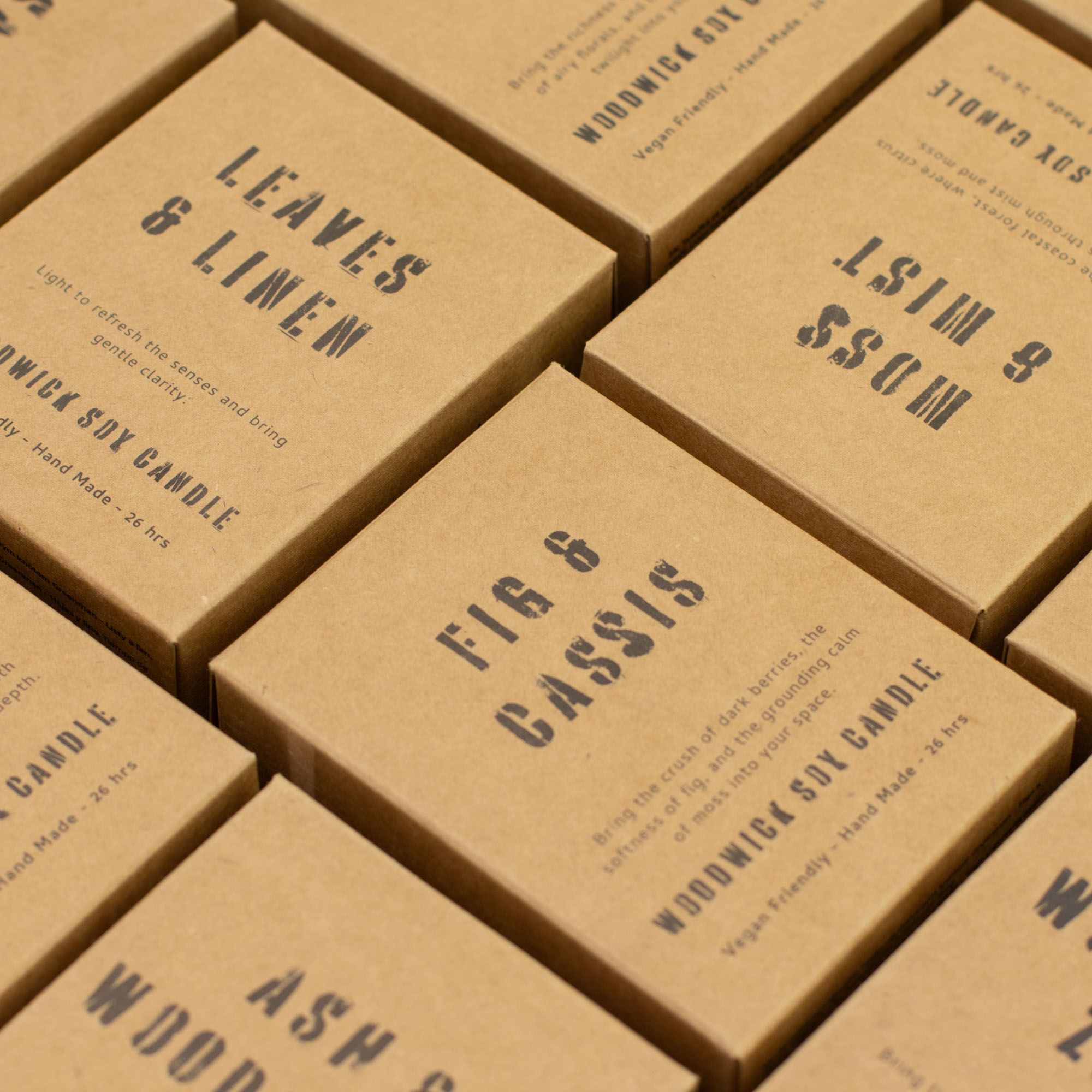 A rich, woodland-inspired soy candle blending fruity depth with soft green freshness. Housed in a rustic glass jar with a wooden wick, it creates a gentle crackling ambience while filling the space with a warm, inviting fragrance. Approximate burn time: 26 hours.