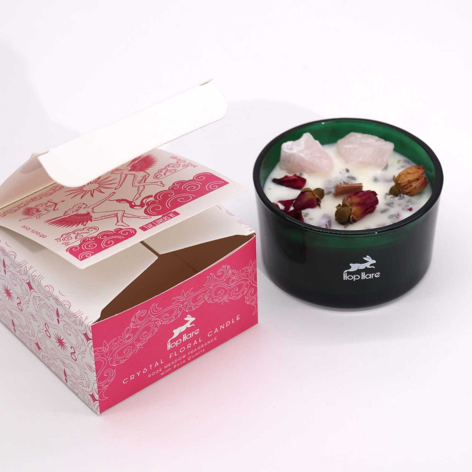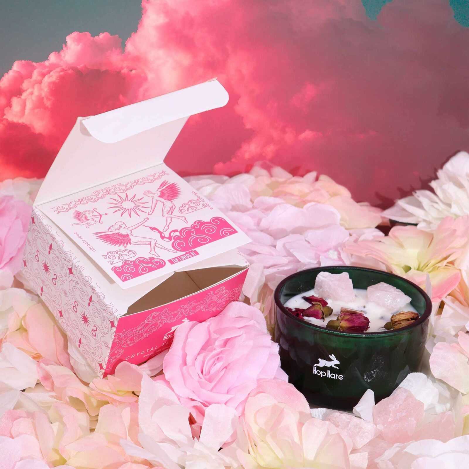 Indulge in the enchanting allure of Hop Hare Crystal Magic Flower Candle – The Lovers, a fusion of Rose quartz and delicate Rose Flowers.