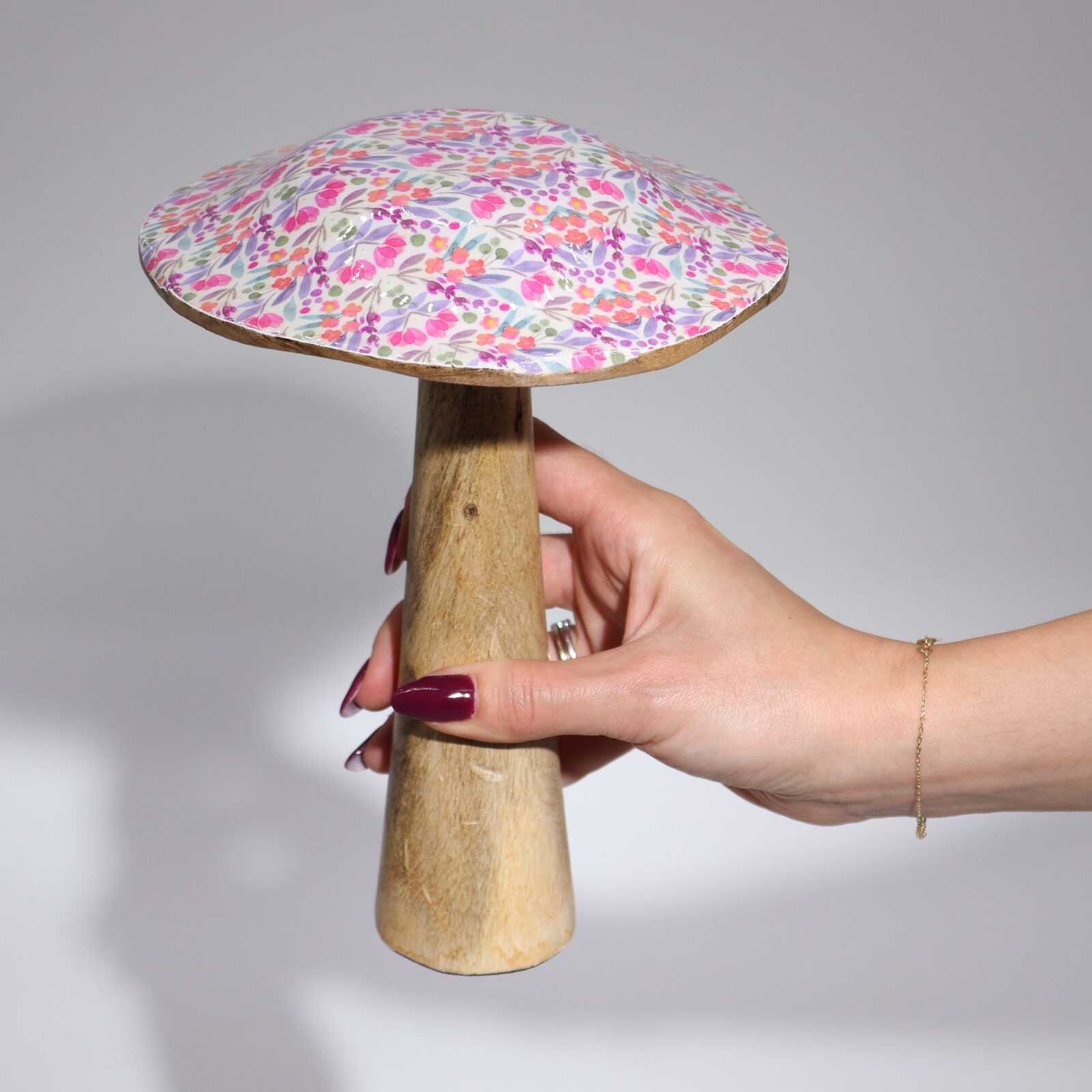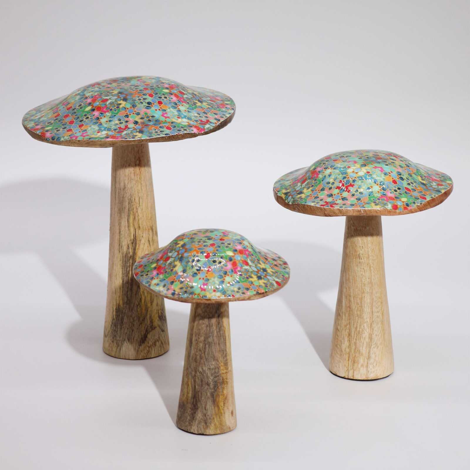 Large Wooden Mushroom – Mediterranean Tile Pattern