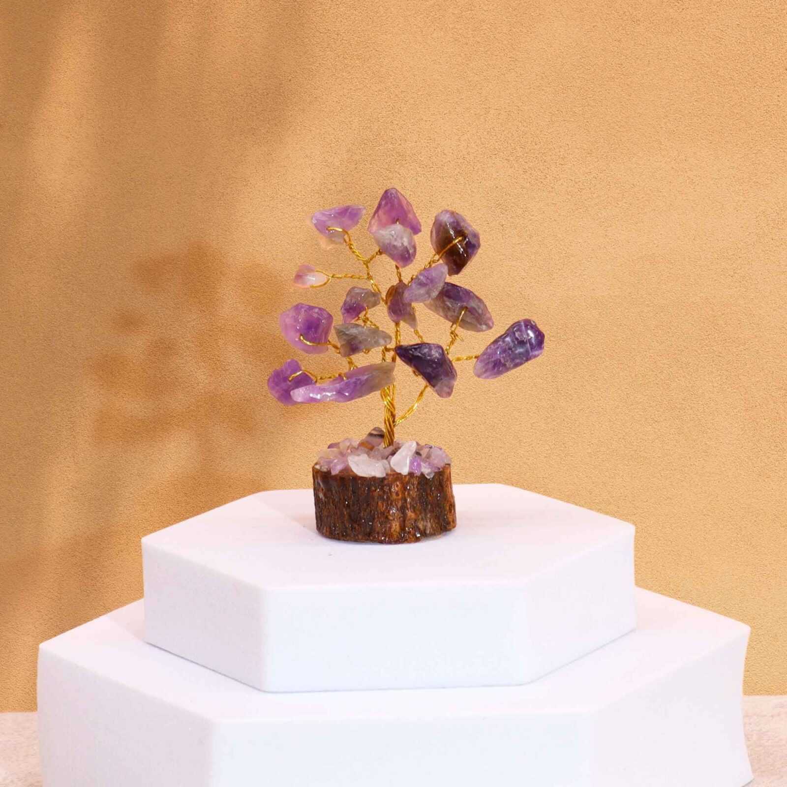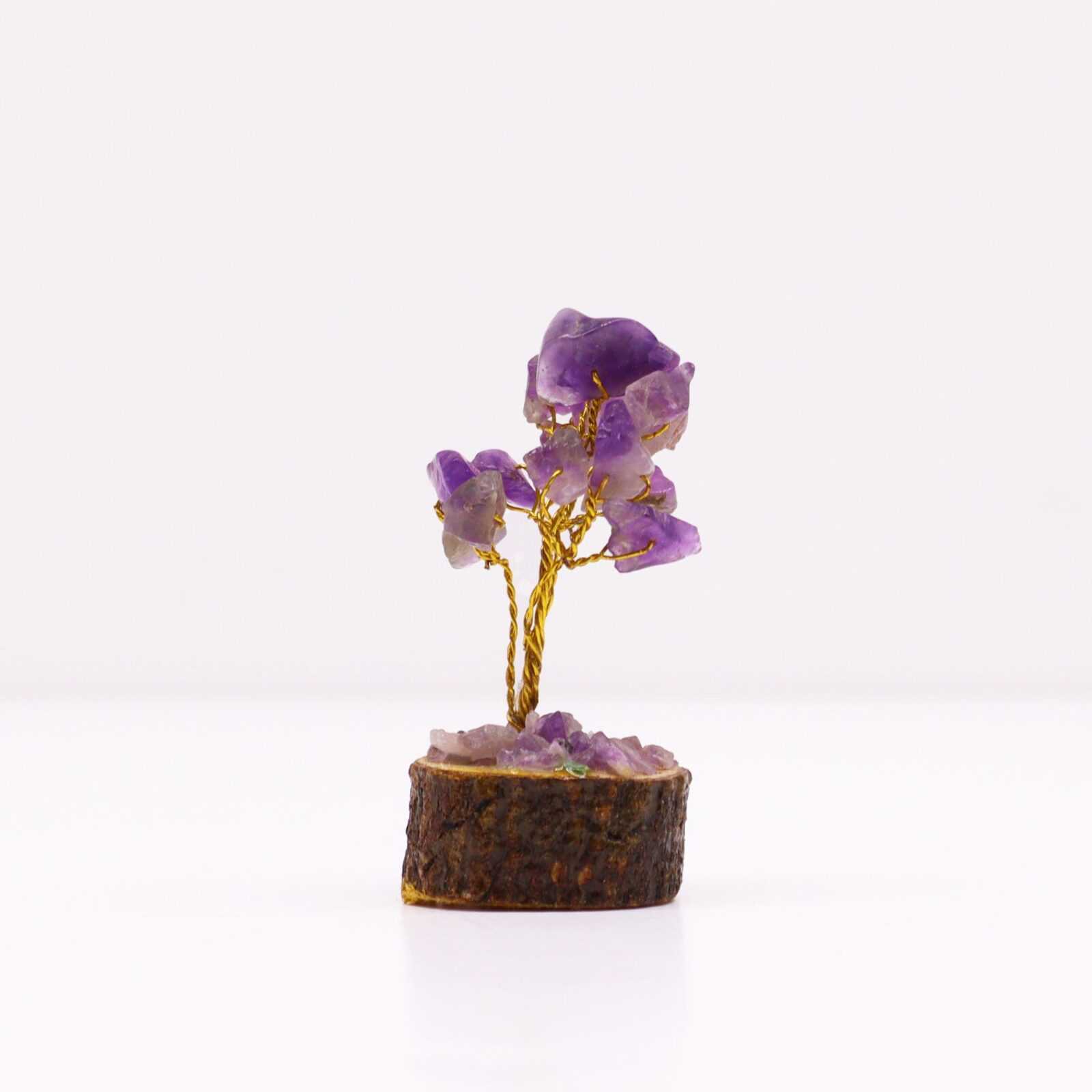 Mini Gemstone Trees on Wood Base – Amethyst – These gemstone trees are crafted to add a touch of elegance and spiritual insight to any environment while harnessing the power of Amethyst to promote peace, clarity, and inner balance.