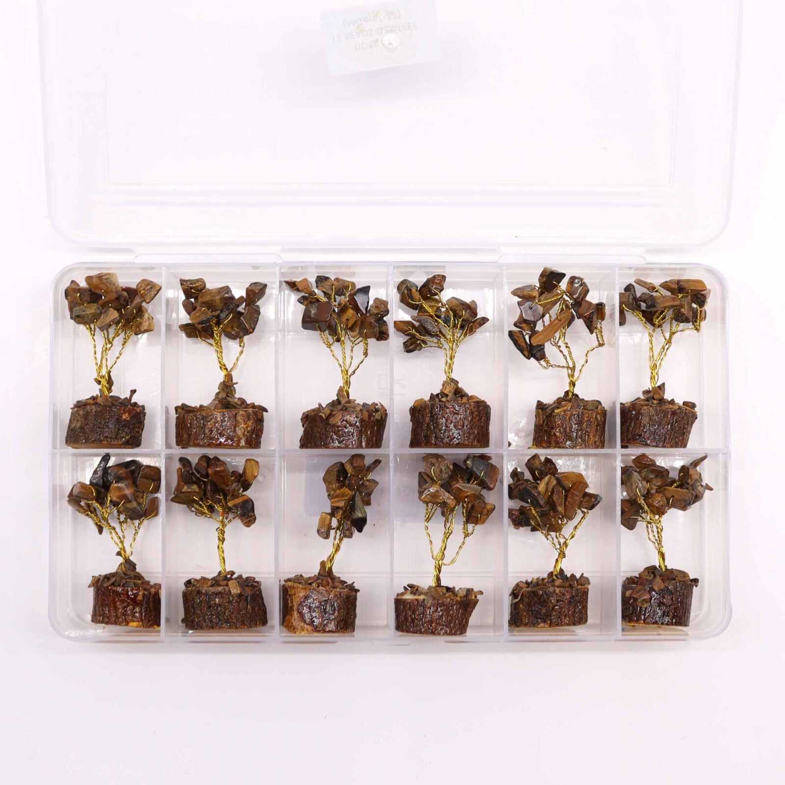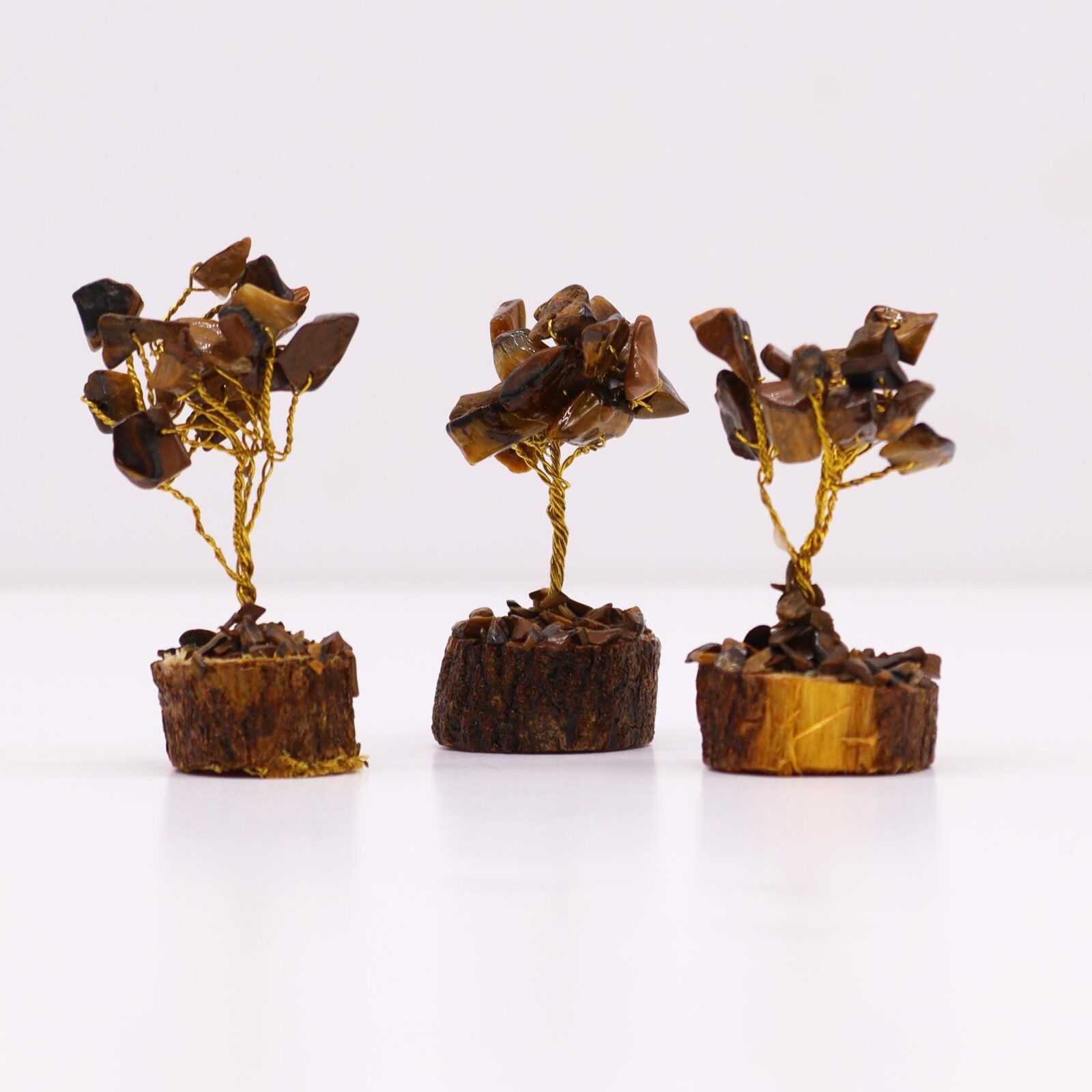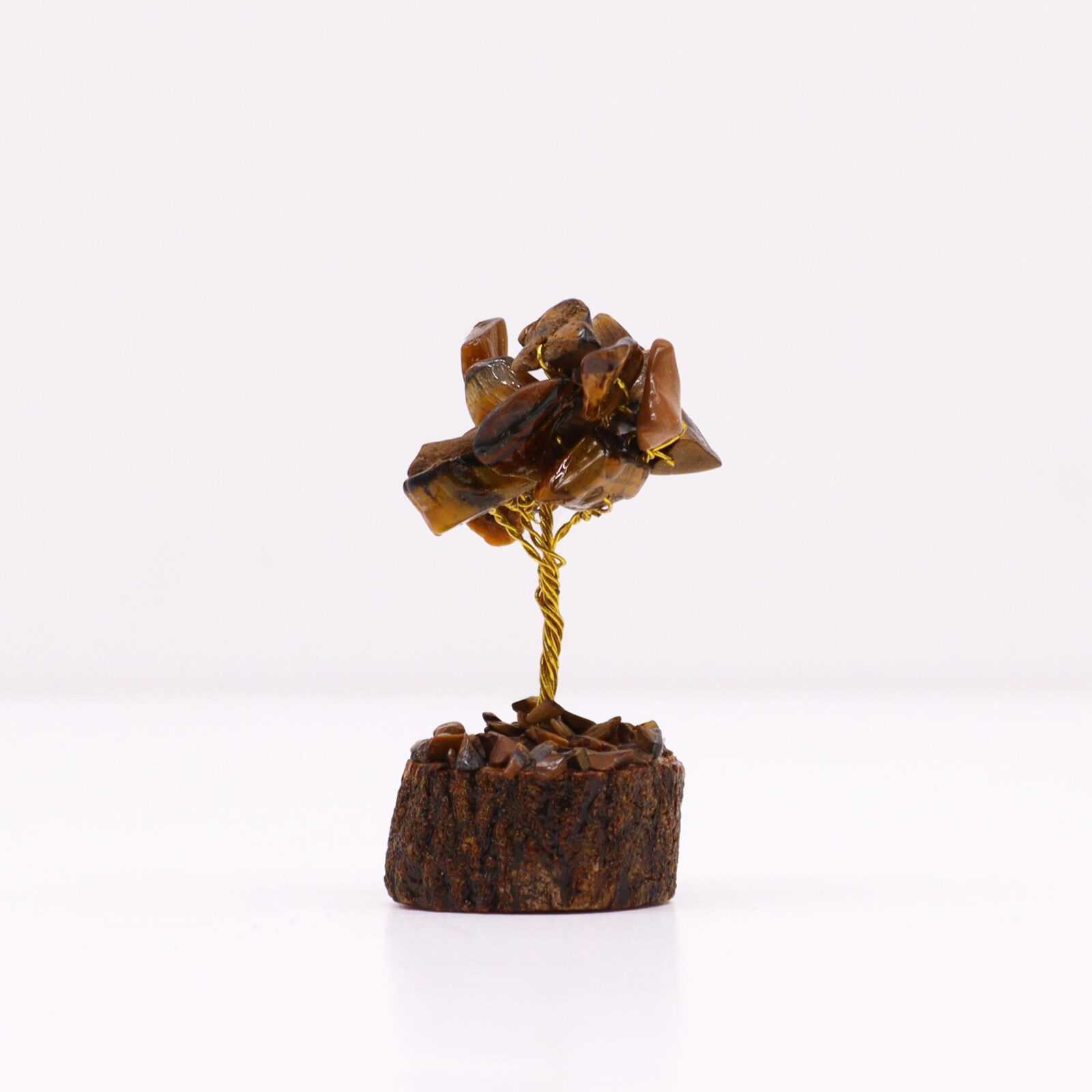 Mini Gemstone Trees on Wood Base – Tiger Eye – These mesmerising gemstone trees are created to bring an air of elegance and strength to any space, harnessing the potential of Tiger Eye to instil focus, confidence, and balance.