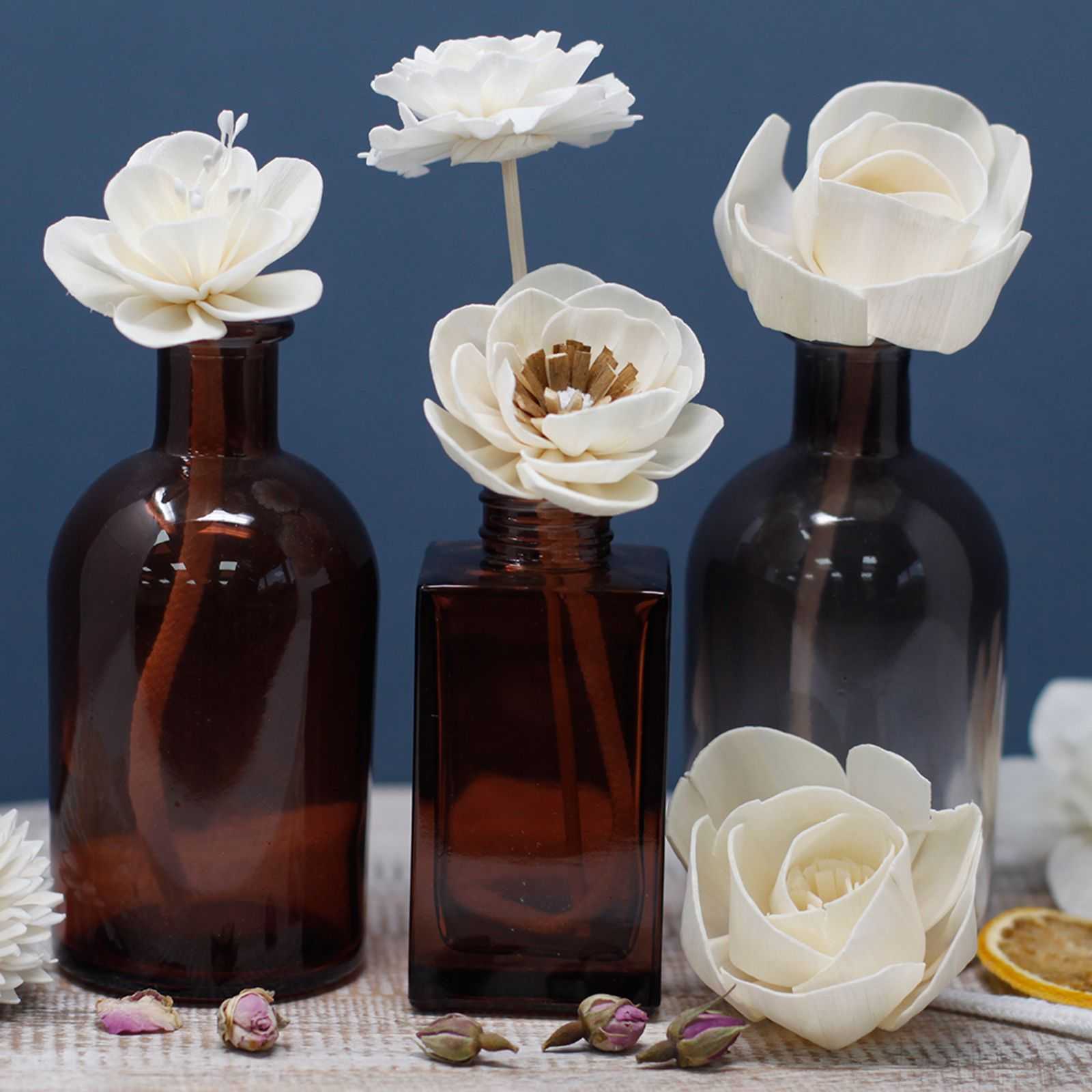 These Natural Aroma Diffuser Flowers are craft made by hand from sola wood. Connected to a cotton string or reed stick they draw the fragrance up into the flower making the most beautiful artistic diffusers.