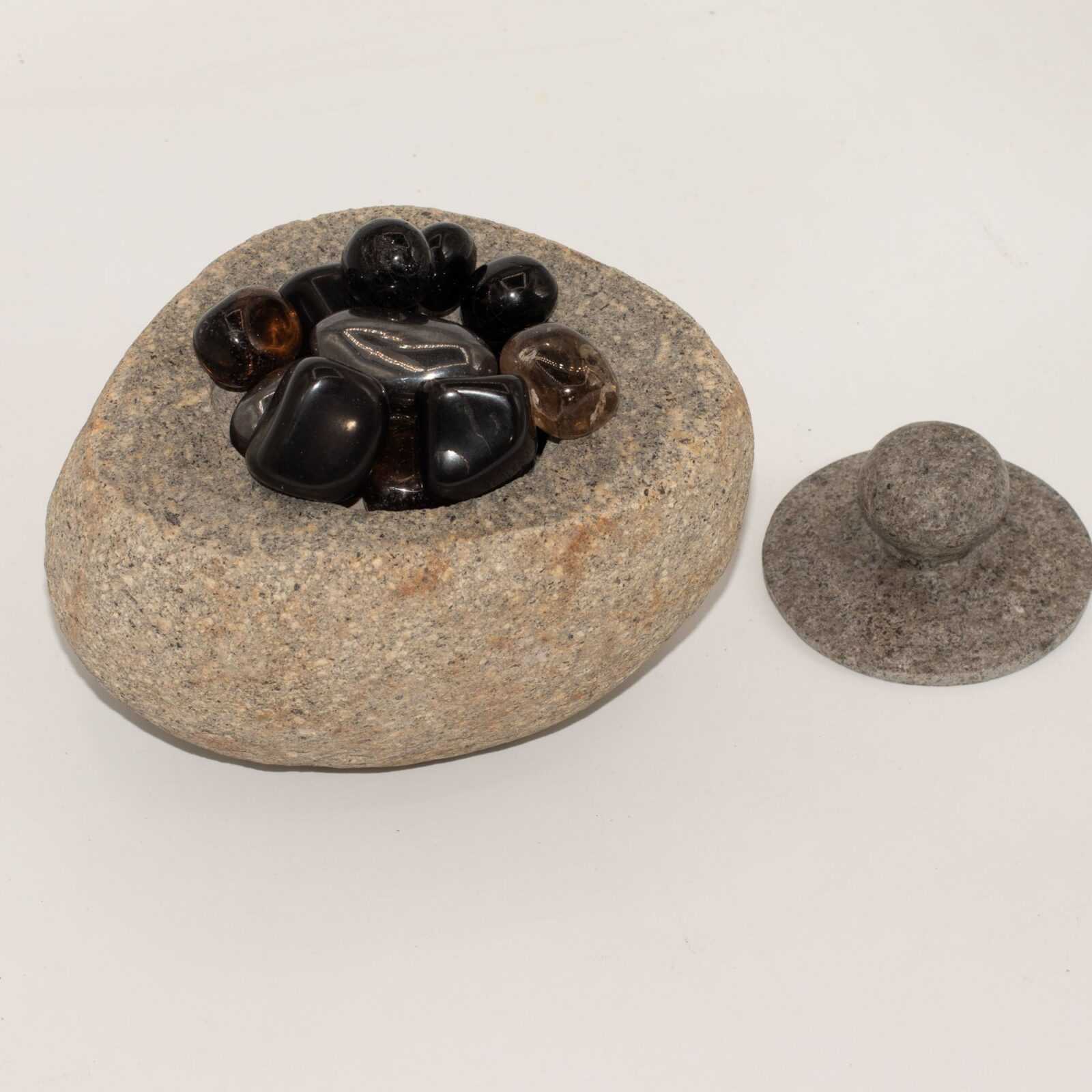 Carved from solid riverstone, this large grounding pot makes a calm, grounding statement in any space. Its natural texture, weight, and earthy tones give it a strong, settled presence that feels both timeless and reassuring.