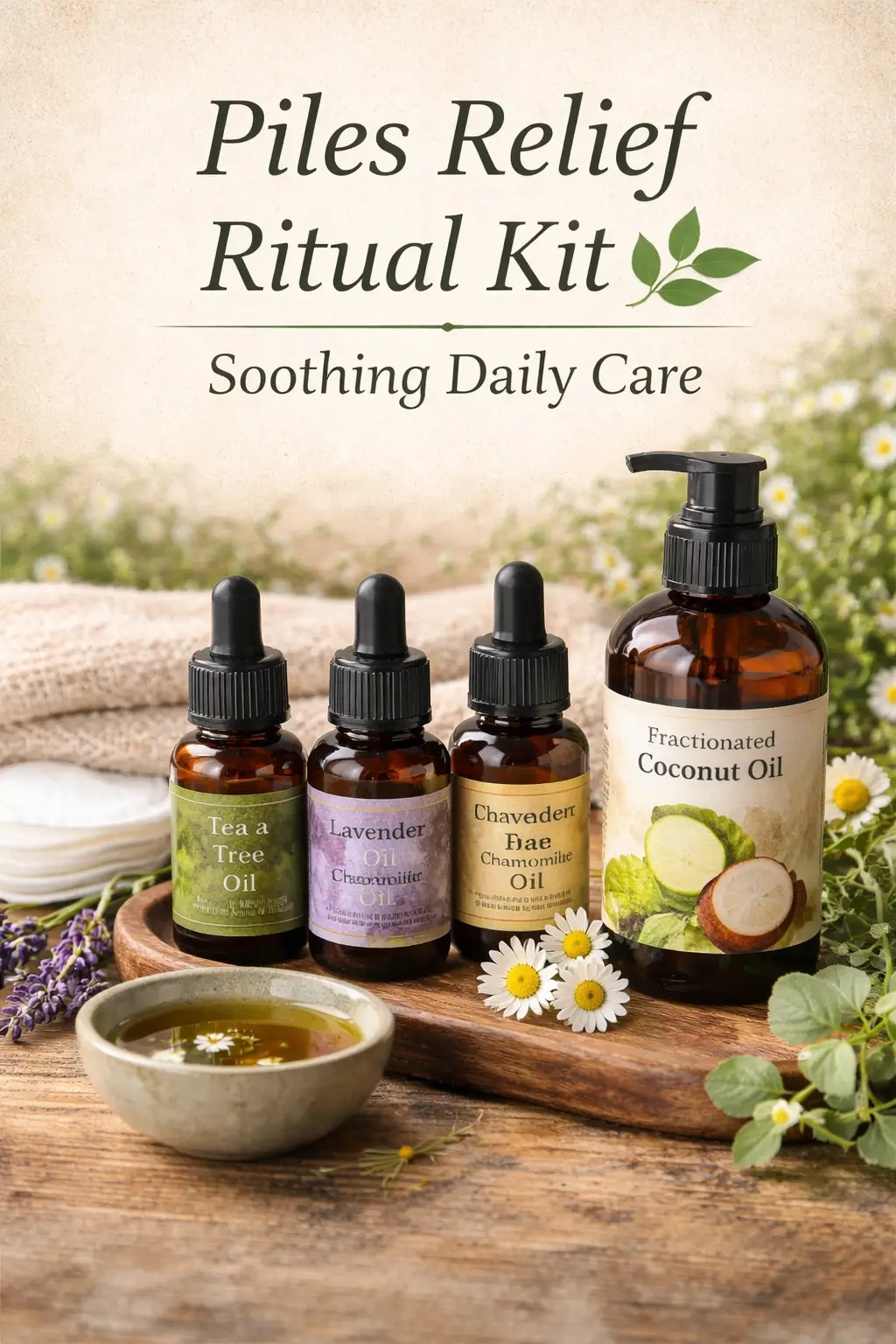 The Piles Relief Ritual Kit has been designed to support daily comfort using a carefully selected combination of essential oils and a nourishing carrier oil.