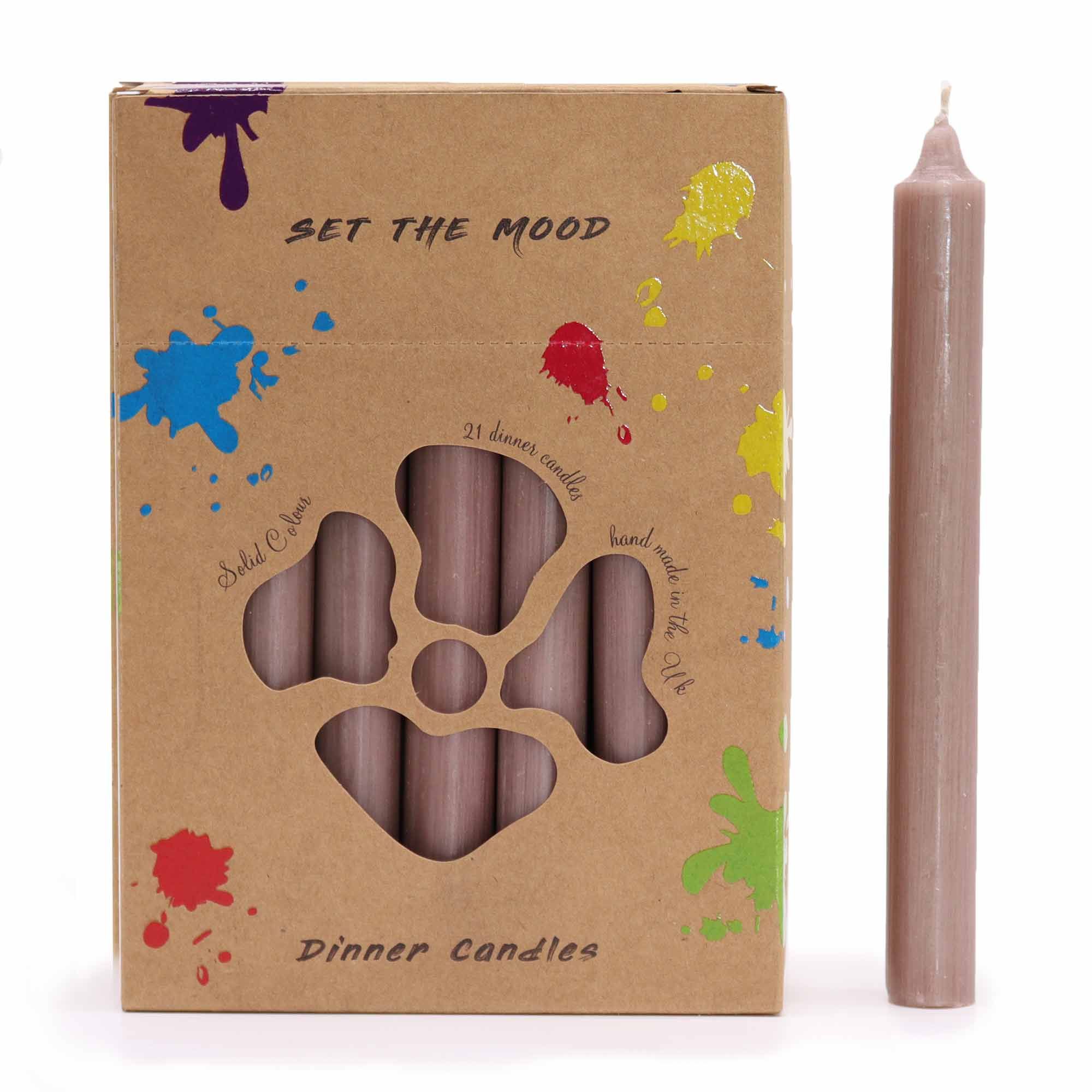 Solid Colour Dinner Candle Set – Pack of 21 – Rustic Taupe