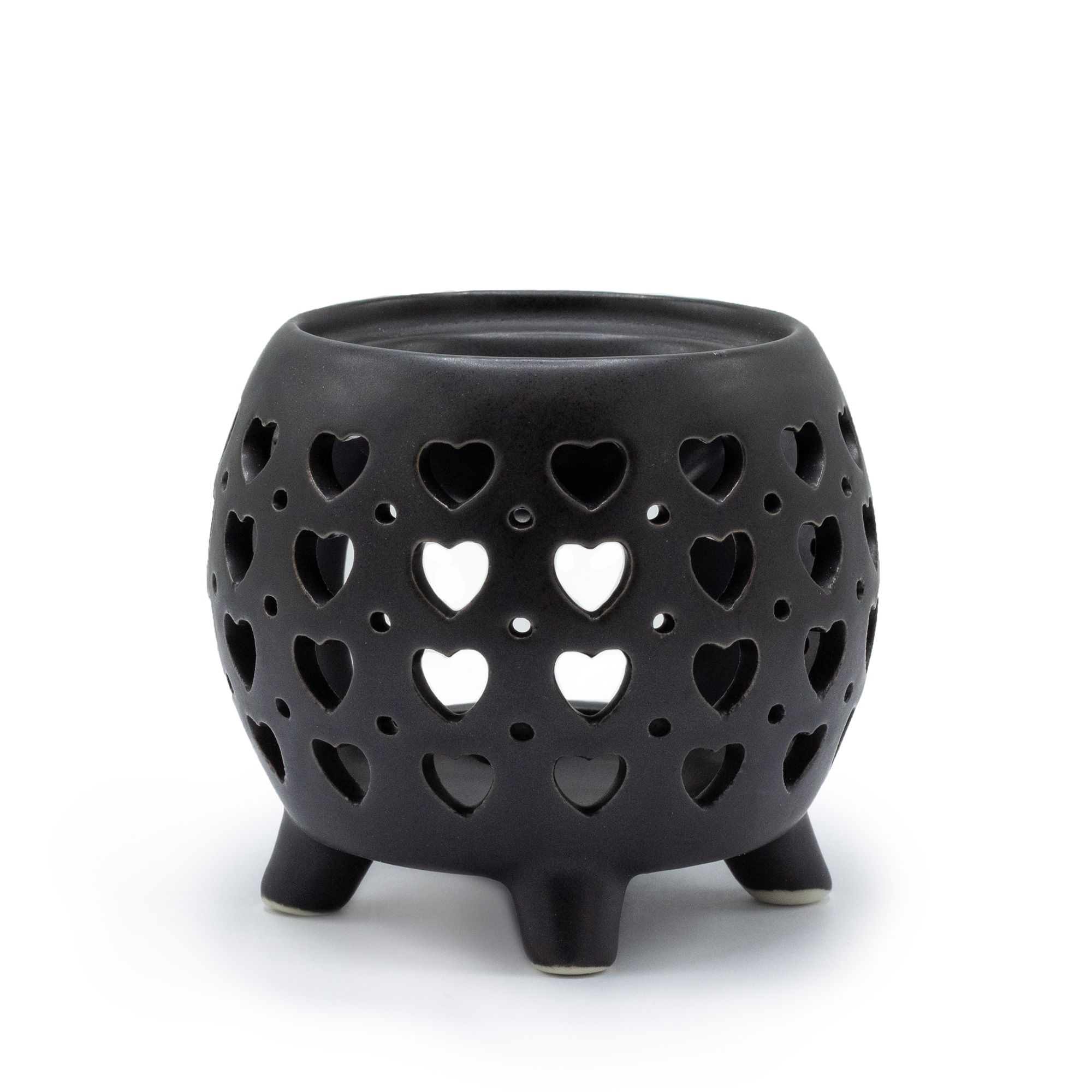 Squat Pot Oil Burner Multi Hearts – Matt Black