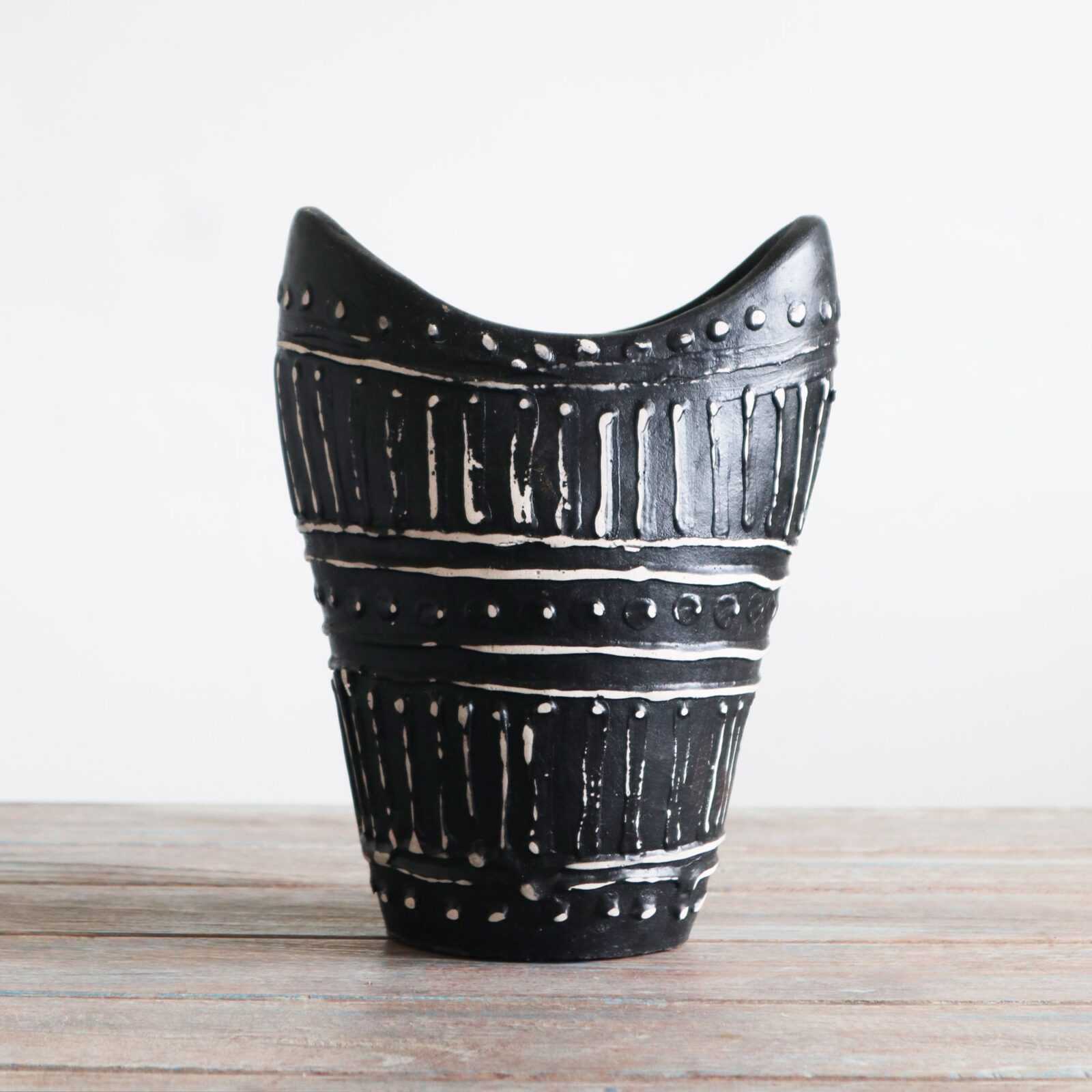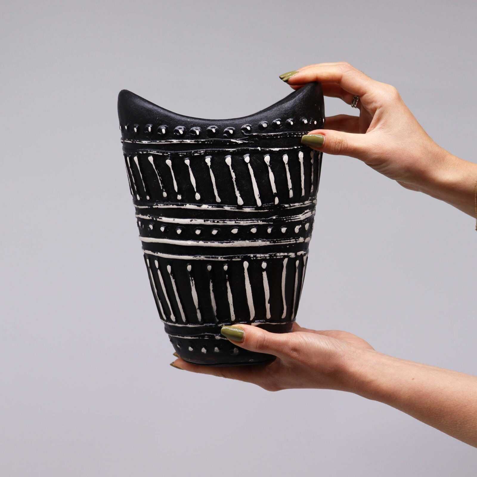 Swirls Shaped Vase in Chocolate from Lombok – a fusion of artistry and culture. Handcrafted on the Indonesian island of Lombok, these ceramic vases showcase terracotta's rustic charm, shaped into various unique forms.