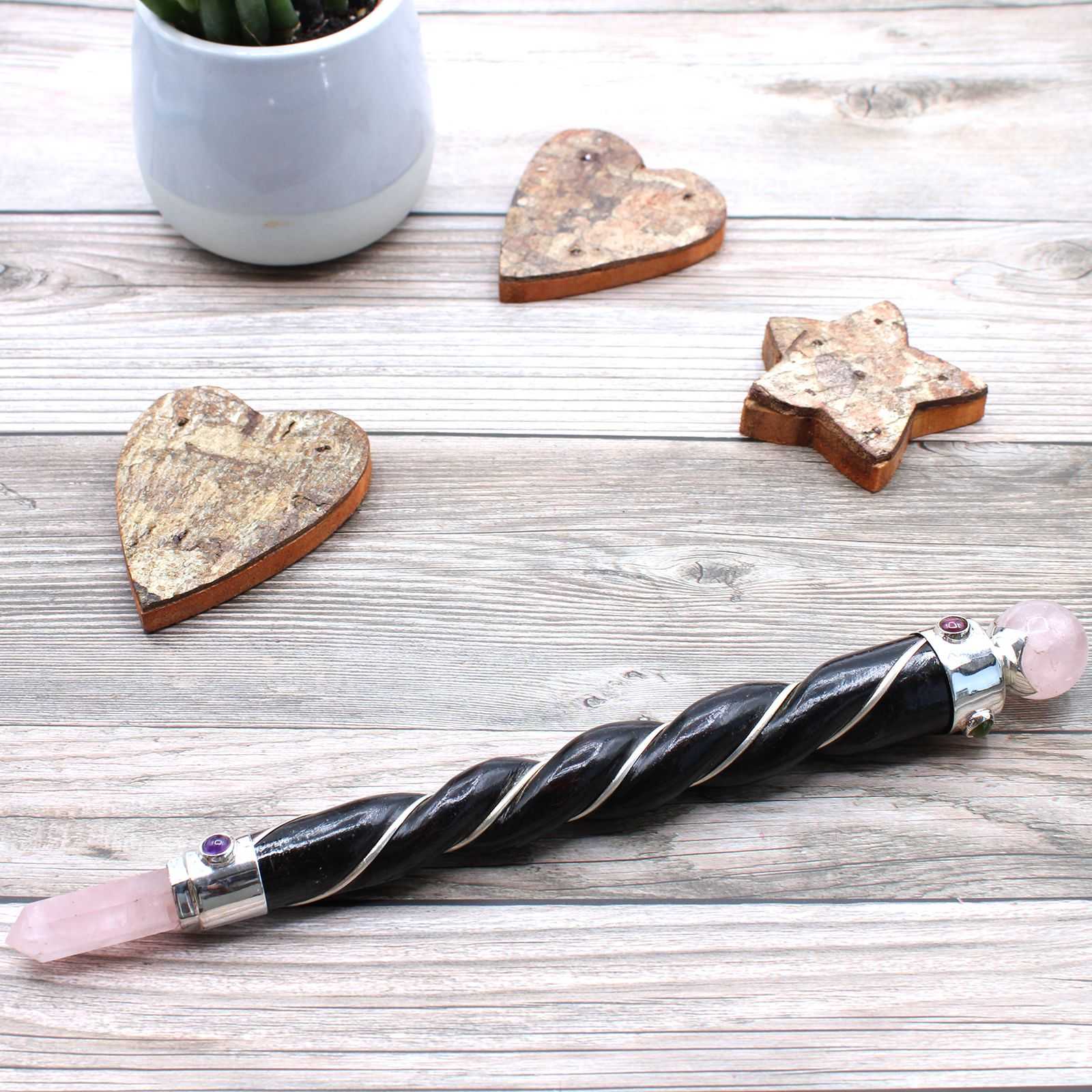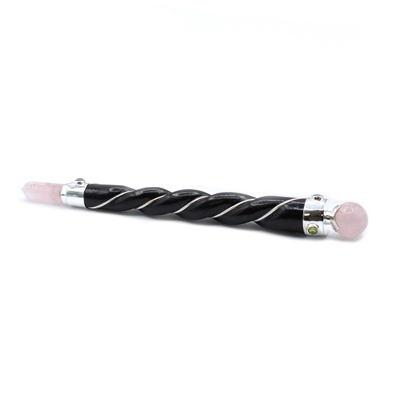 Twisted Healing Wand – Silver Rose Quartz Sphere